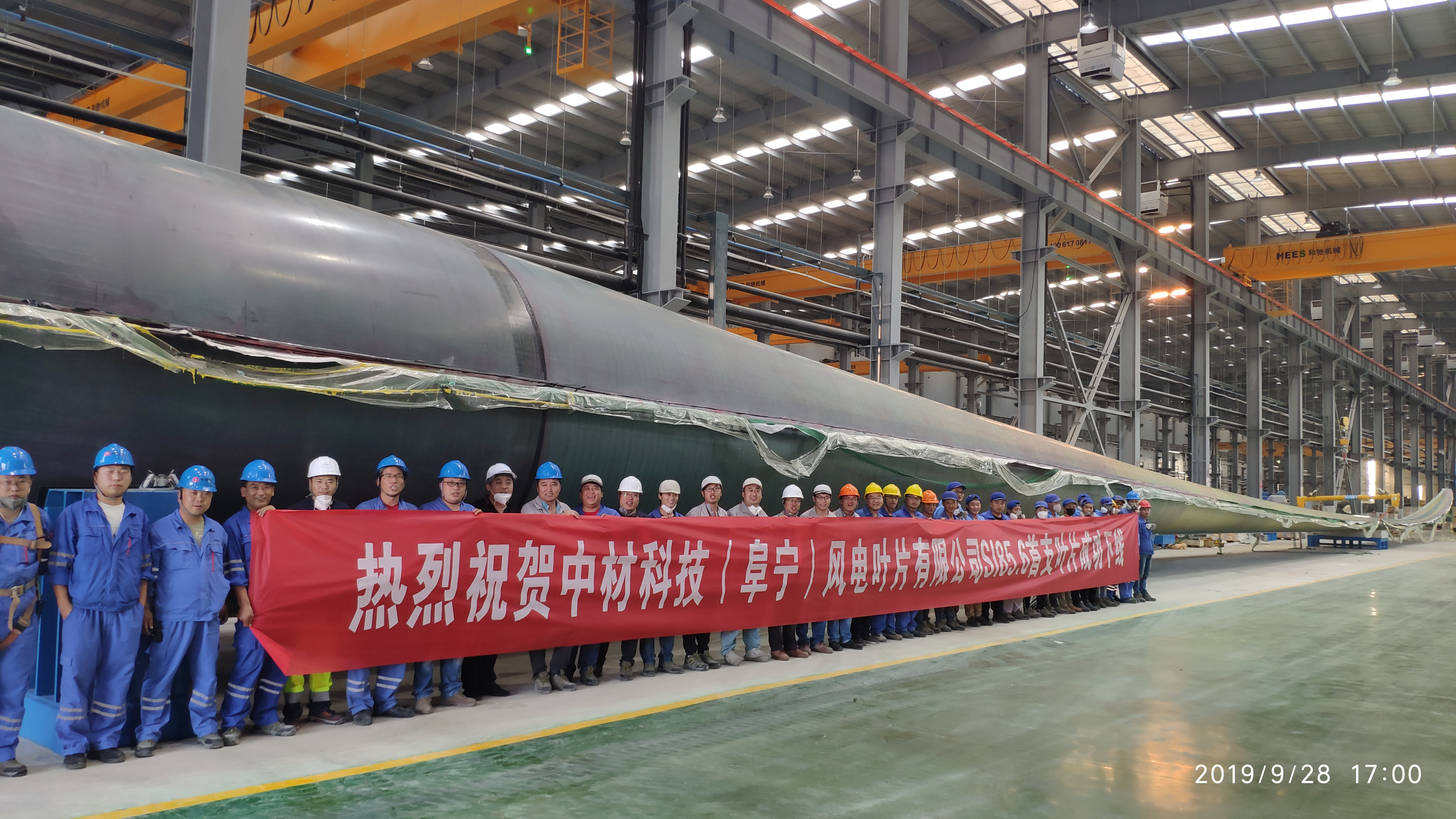 - 為慶祝中華人民共和國成立70周年 國內首支單機兆瓦海上全玻纖葉片Sinoma85.6順利下線